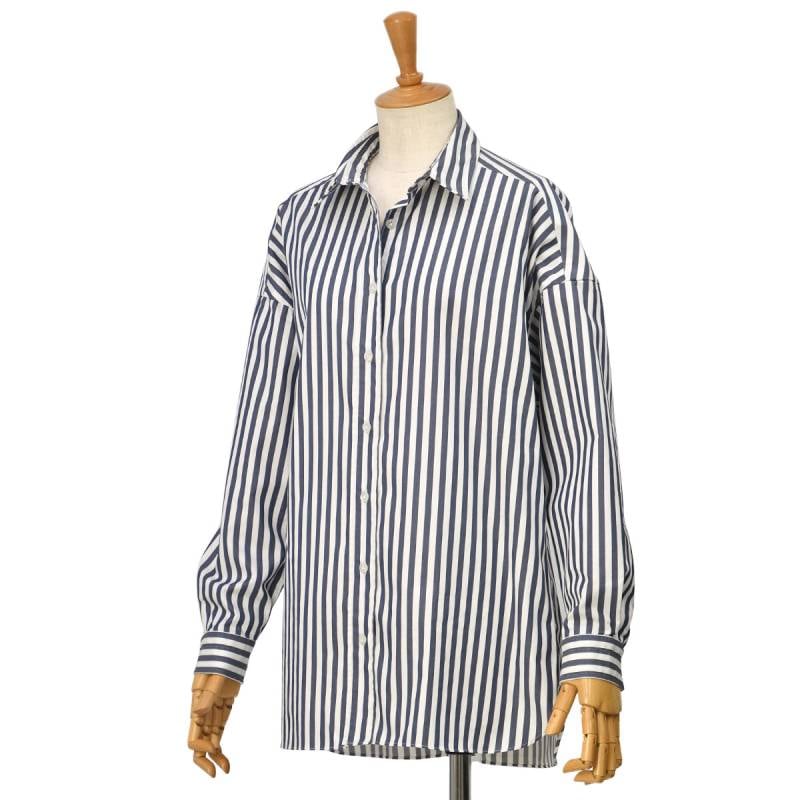 Finamore【フィナモレ】ビッグシルエットストライプシャツ 460110 C0510 06 GRACE LISA コットン ホワイト ネイビー