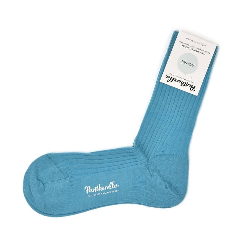 【FINAL SALE】Pantherella【パンセレラ】リブ靴下 W796 BRIGHT TURQUOISE ウール ターコイズ
