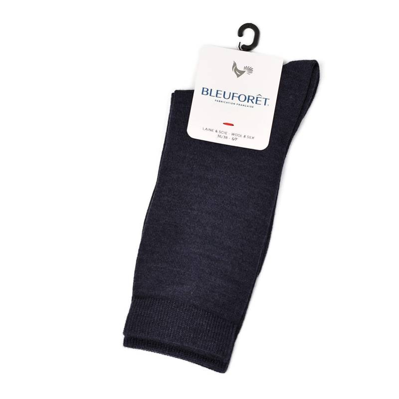 BLEU FORET【ブルー・フォレ】ジャージーニット靴下 6488 WOOL SILK SOCKS JERSEY KNIT 9911000324 077 navy ウール シルク ネイビー