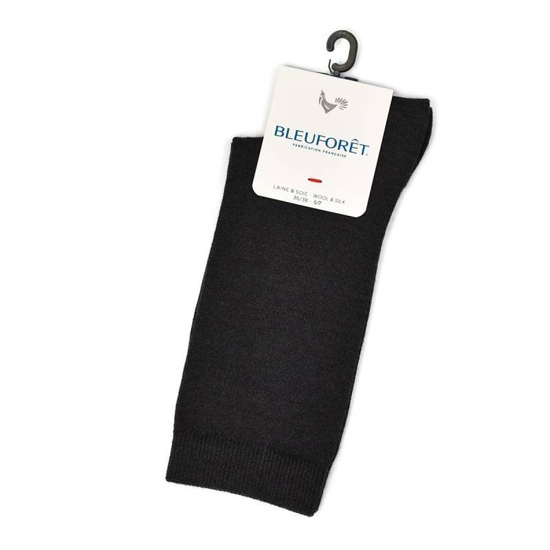 BLEU FORET【ブルー・フォレ】ジャージーニット靴下 6488 WOOL SILK SOCKS JERSEY KNIT 9911000324 077 black ウール シルク ブラック