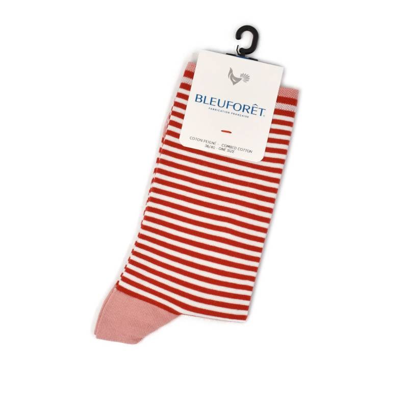 BLEU FORET【ブルー・フォレ】ボーダー靴下 6537 RAYURES 4211000118 023 red コットン ナイロン レッド