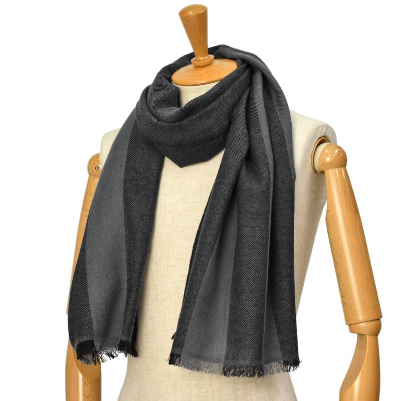 DELRUBY【デルルビー】大判カシミヤストール Landline ストライプ ブラック ダークグレー