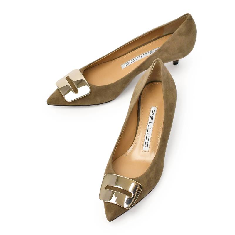 【FINAL SALE】【size35,35 1/2,36,36 1/2】PELLICO【ペリーコ】プレート付きポインテッドトゥパンプス 0193 ANIMA 35 SC 11189 トープ