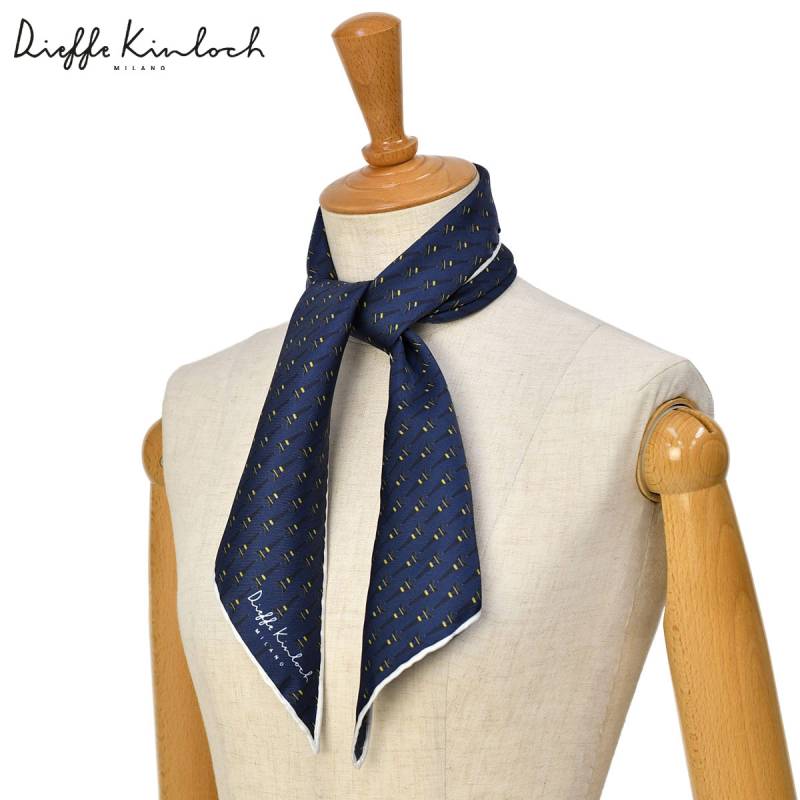 Dieffe Kinloch【ディエッフェ・キンロック】スカーフ トライアングル TOUR EIFFEL エッフェル塔 シルク ネイビー