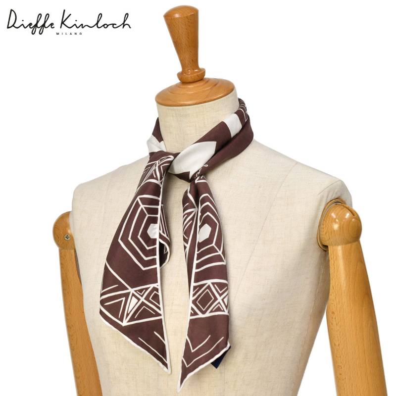 Dieffe Kinloch【ディエッフェ・キンロック】スカーフ トライアングル TATOO AMAZON トライバル柄 シルク ブラウン