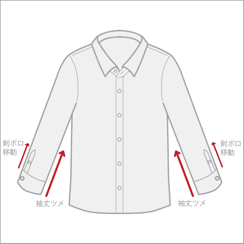 【セール商品お修理】筒袖 袖丈ツメ・ダシあり(ベルト移動なし)