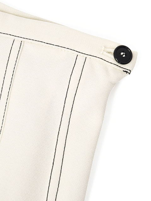 腰まわりのボリュームは抑えておりますので、ゆったりとしたトップスともバランスよくお召しいただけます。