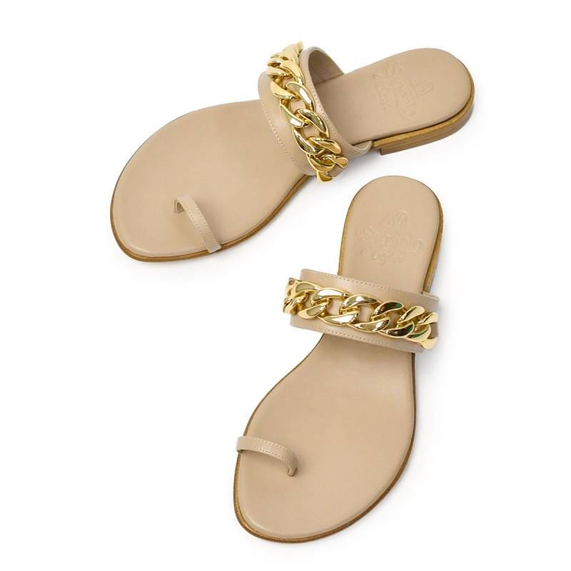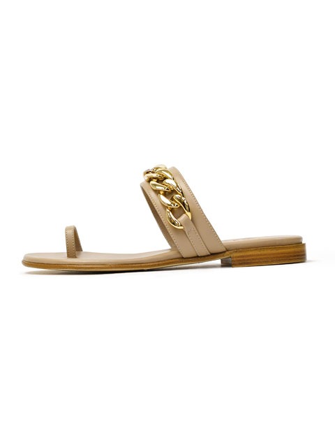 こちらのサムループのモデルは、甲のストラップにゴールドチェーンが施され華やかな足元に♪