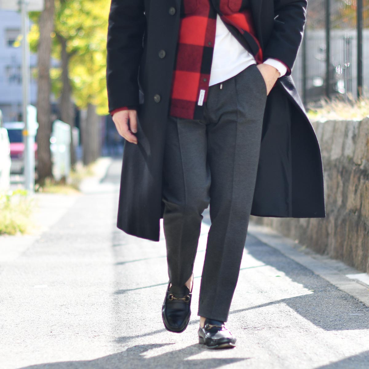giabsarichivioの定番である程よく肉厚なジャージー生地を使用しており、しっかりとした伸縮性ながらも戻りのいいキックバックが特徴の一本でございます。