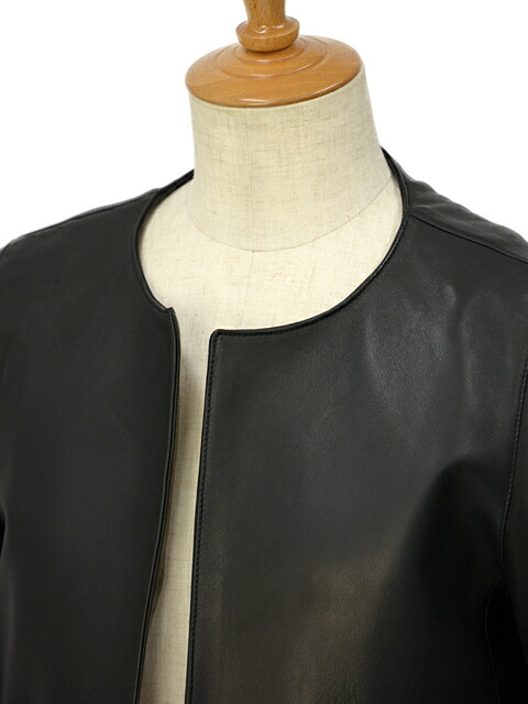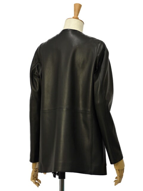 また、ノーカラーのデザインはレザージャケットのハードさを抑え、上品な女性らしさをぐっと強調してくれます。