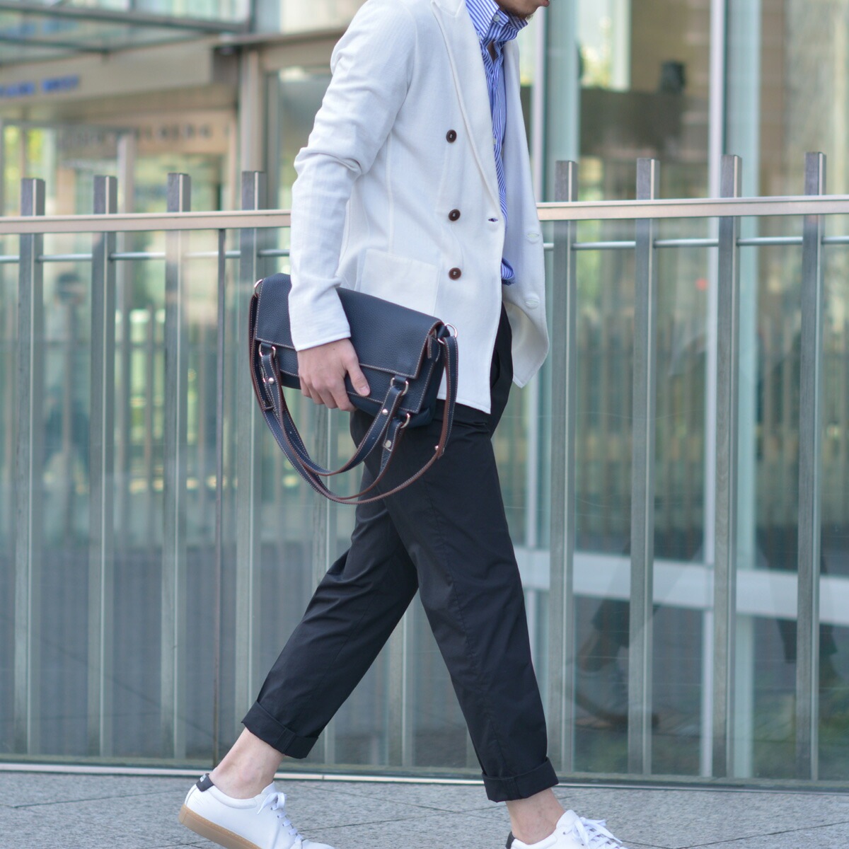 ビジネスシーンでのトートスタイルから、オフスタイルでの軽快なコーディネートまで完全に網羅できる懐の深さを感じさせてくれますね。