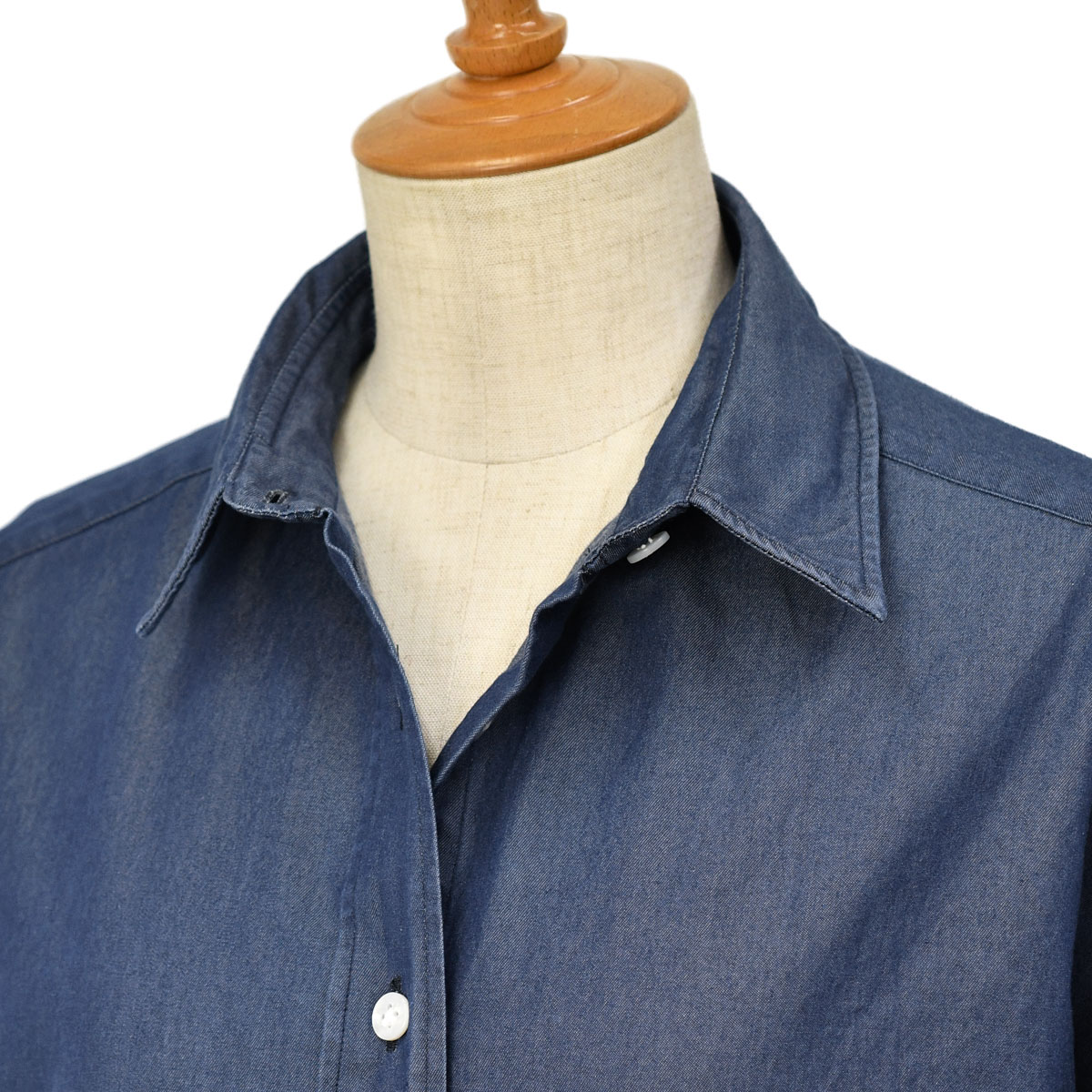熟練したシャツ職人の手縫いによる、たっぷりとイセ込んだ肩と、自然なカーブを描く立体的な袖付けで、ビッグシルエットな一着もスッキリとした印象で上品な女性らしさを失わず気負わないラフなデイリースタイルを演出してくれる1枚に仕上がっています。