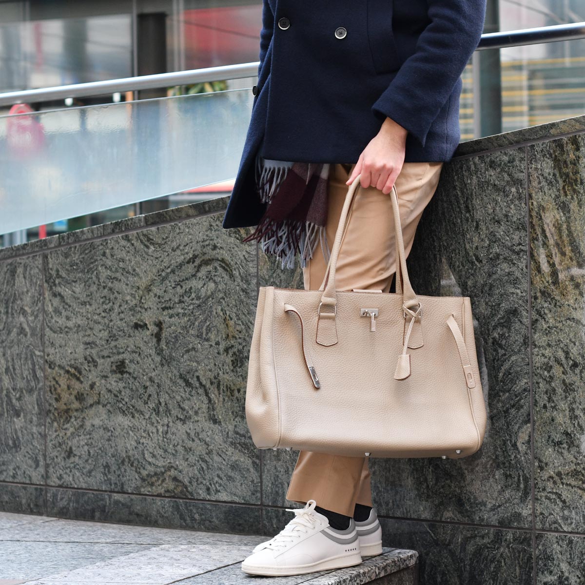 また、ベルトと南京錠が備わった佇まいが印象的で、レザー本来のクオリティに加えて一層のラグジュアリー感のあるスタイルを形成してくれます。