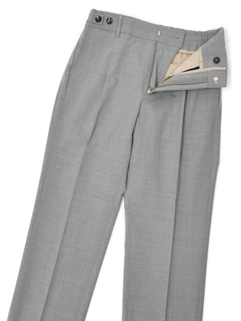 ウール×ポリエステルの混紡素材は、ナチュラルなウールルックスながらもコンフォートなストレッチ性が特徴。また、こちらのファブリックはご自宅にてお洗濯が可能となっておりますので、夏の汗ばむ季節でも安心してご愛用頂けます。
