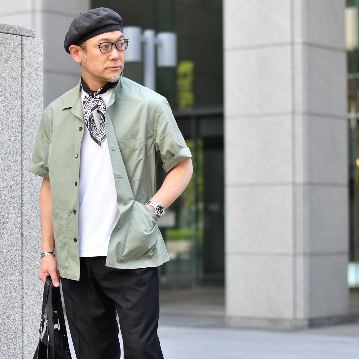 少し動きのあるイージーなパンツに合わせて夏の着こなしの幅を一気に広げてくれる、そんなアイテムではないでしょうか。