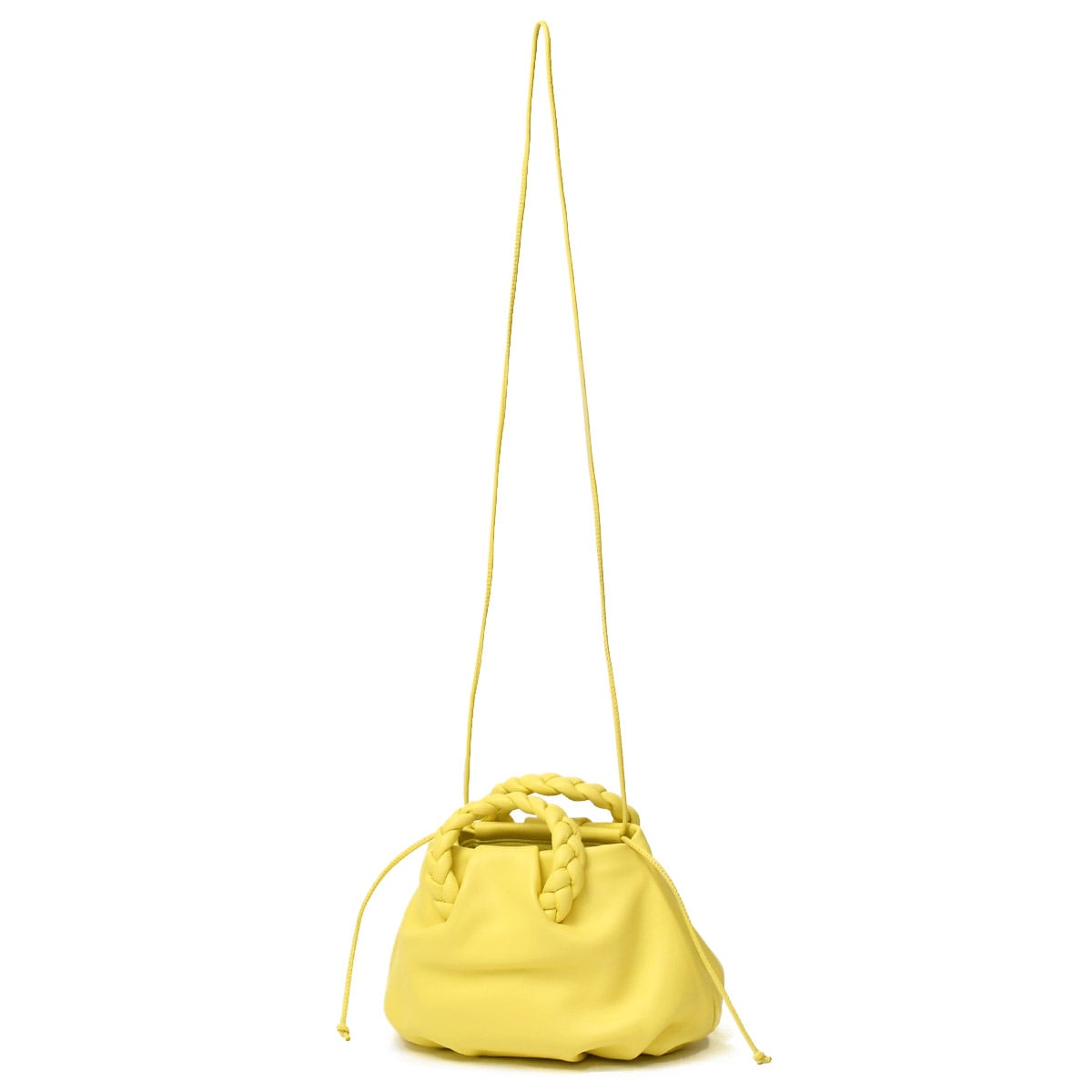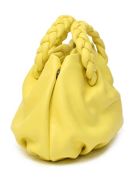 柔らな羊革で編まれたハンドルやボディのプリーツなどコロンとしたフォルムがとても愛らしいバッグです。