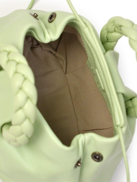 柔らな羊革で編まれたハンドルやボディのプリーツなどコロンとしたフォルムがとても愛らしいバッグです。