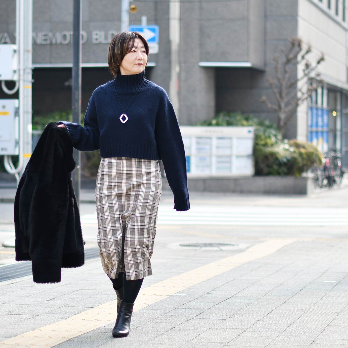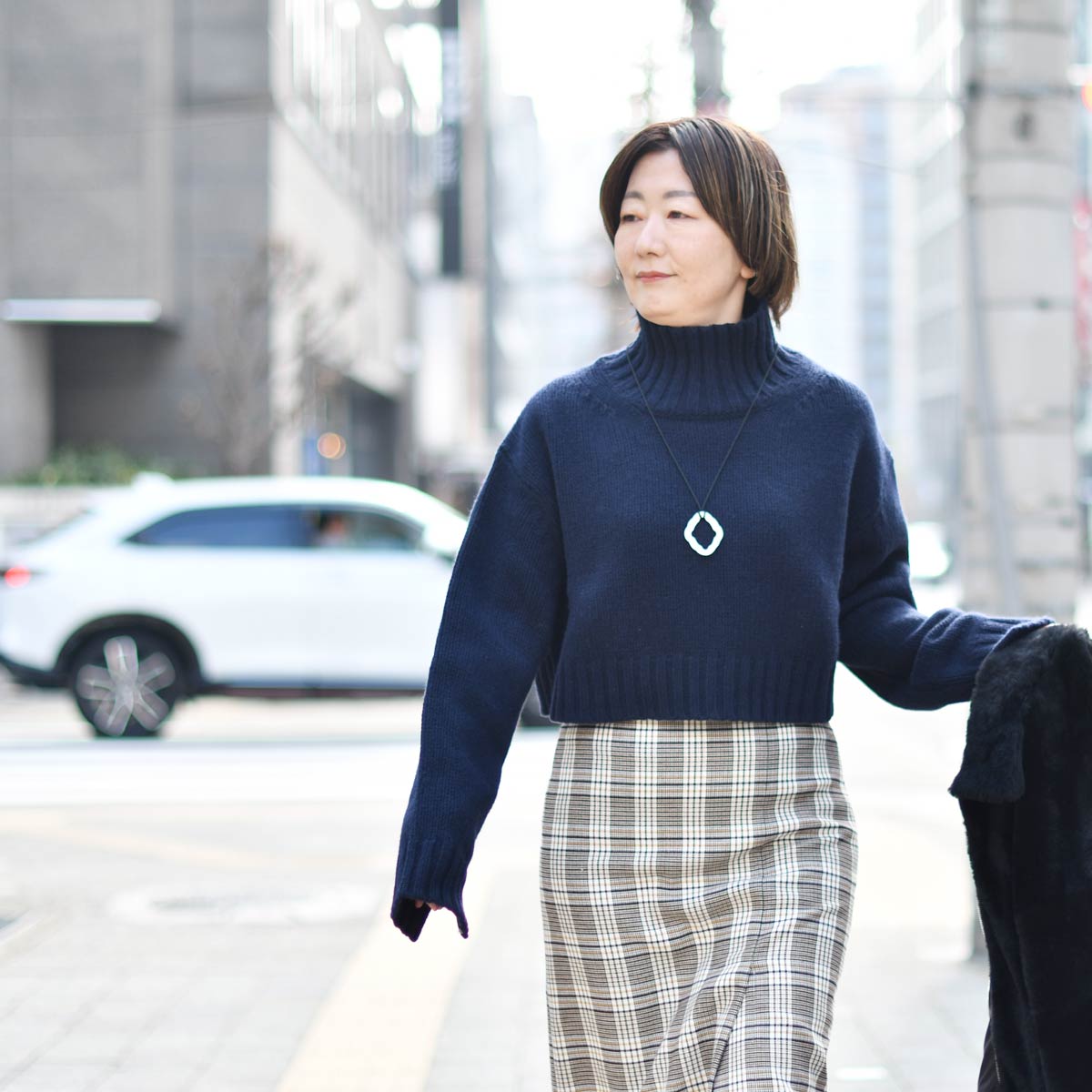 大人のカジュアルスタイルを旬な表情にしてくれるクロップド丈ニット。