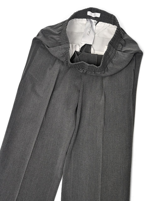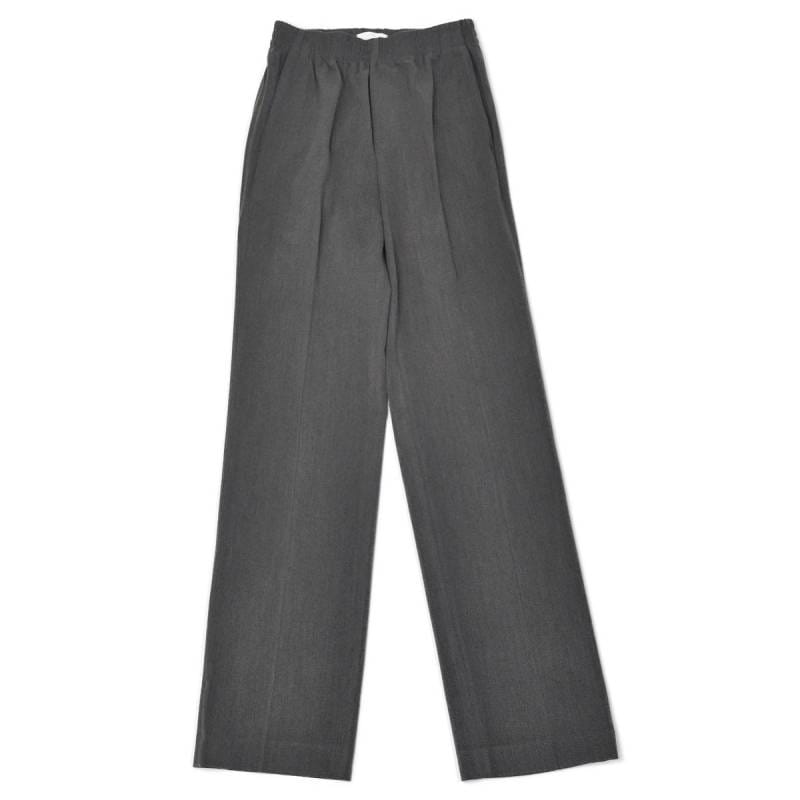 ウール調に仕上げたふくらみのある化繊素材は、しっかりとストレッチが効きしなやかで、リラックス感のある穿き心地ながらエレガントな表情に。