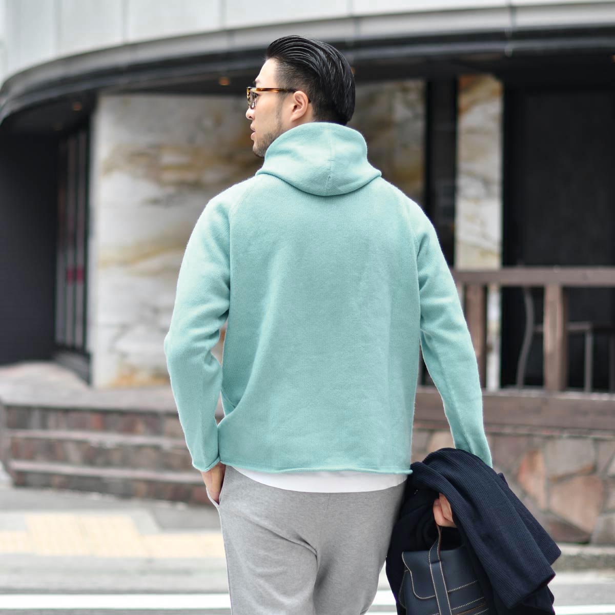 計算されたフード部分は、襟部分に立ち上がりを持たせることで、コートやブルゾンのインナーとしてレイヤードし易く絶妙なバランス◎