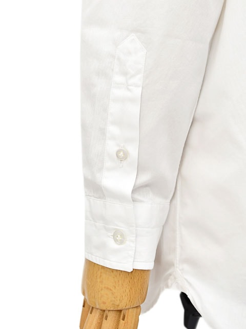 ナポリ出自のシャツらしく、手縫い仕立てによる細かい袖と背中のギャザーが後見姿を美しく見せ、また肩の運動量を妨げず柔らかな着心地。