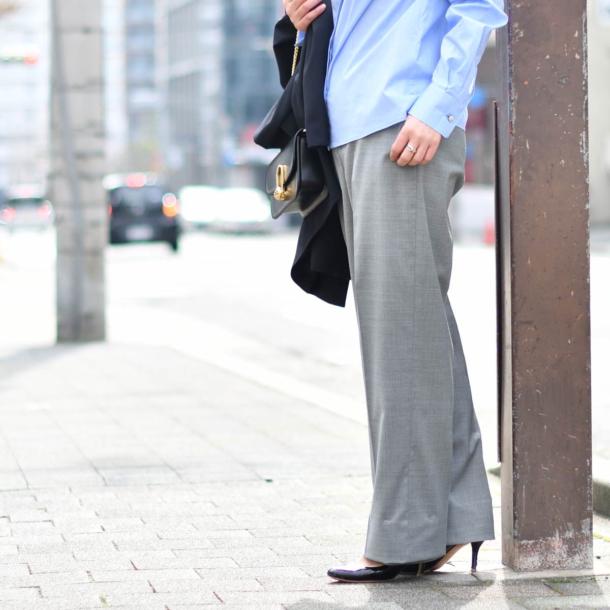 パンツ自体が、上質で上品で綺麗なシルエットの為、着こなしの幅がぐっと広がりますよ。