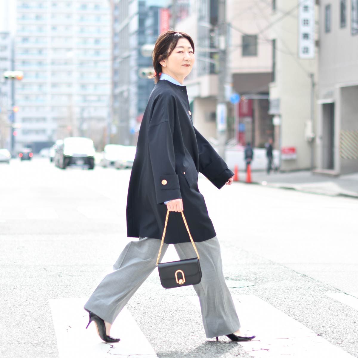 ジャケットにパンプスのきっちりとした雰囲気や、