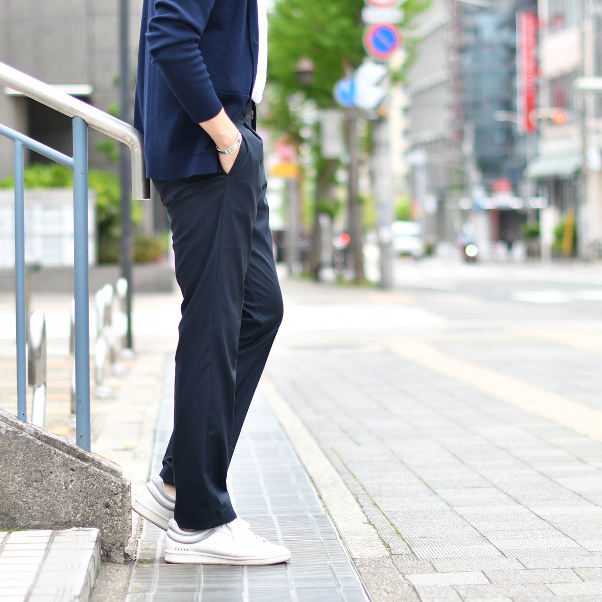 腰から裾にかけて敢えてなだらかに描いたテーパードシルエットは、美脚シルエットを堪能しつつもイージーパンツの様なリラックスした着用感を得ることができ、正に今のマインドを最大限に表現したスグレモノです。