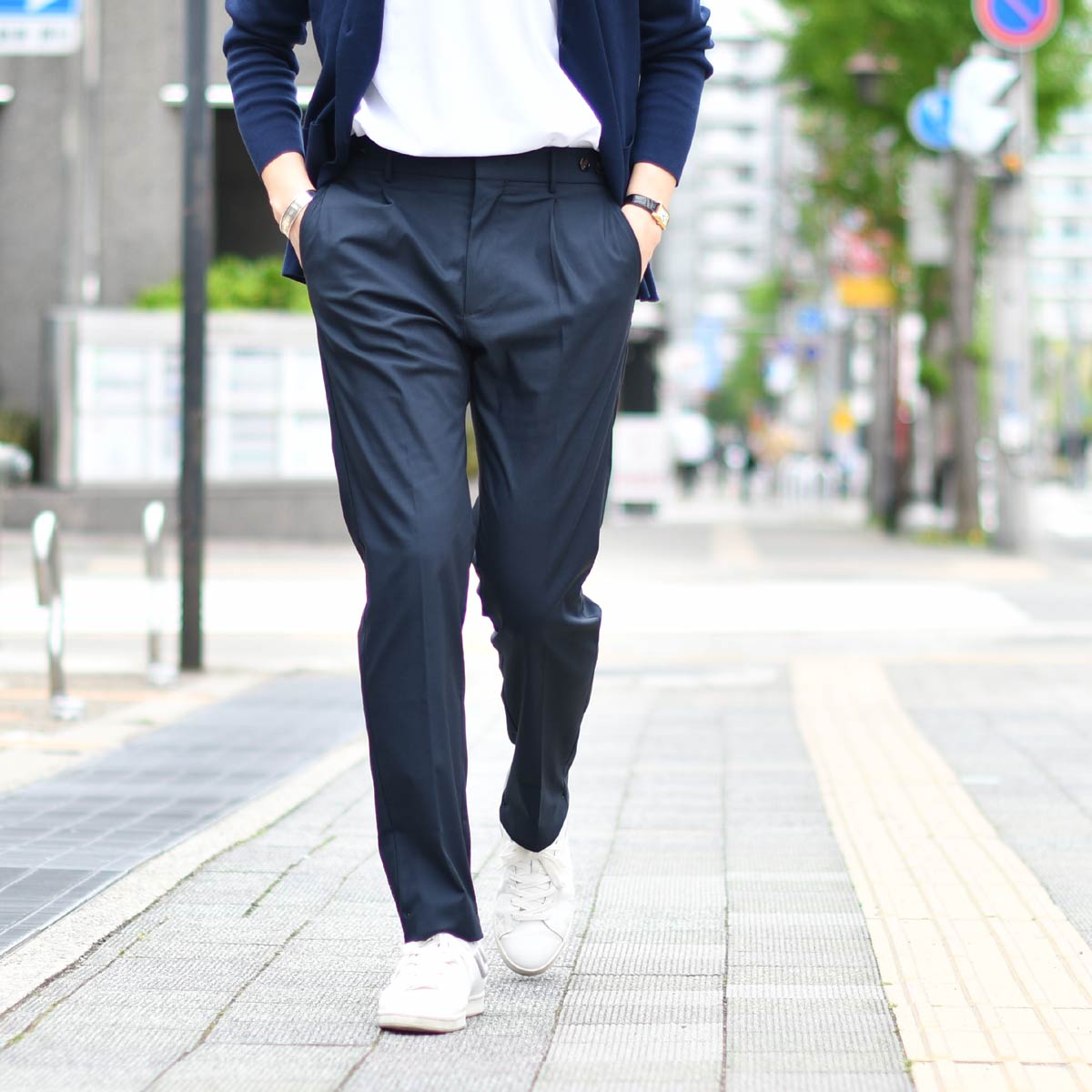 ON/OFF兼用での活躍はもちろん、カジュアルシーンにおいてもクリーン且つリラックスしたスタイルに最適な一本でございます。 是非ご検討くださいませ。
