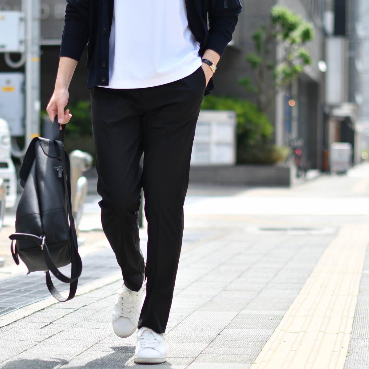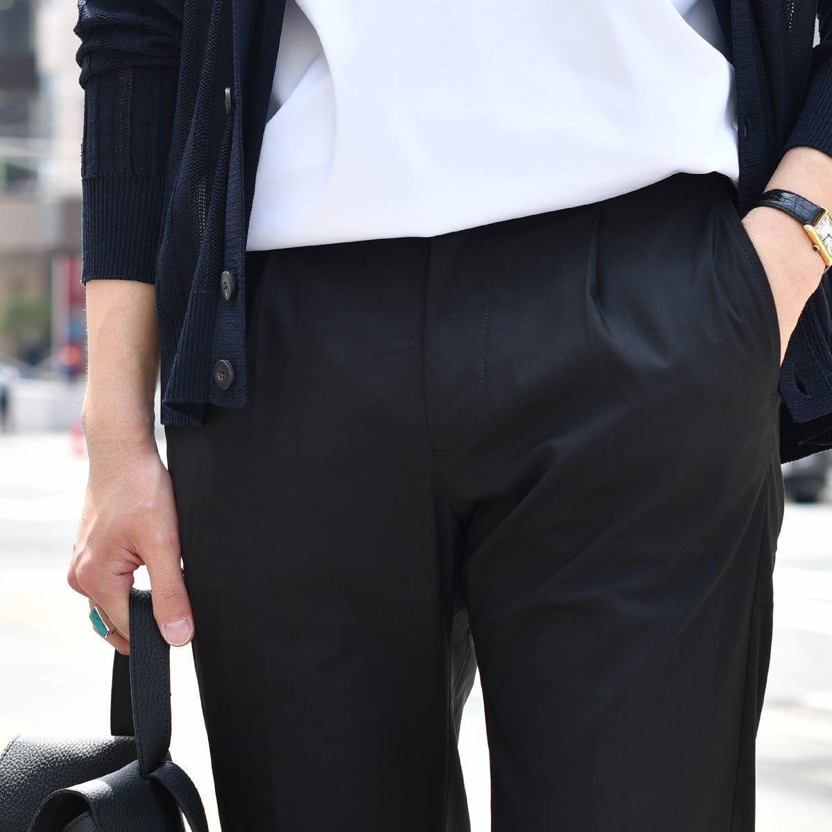 ON/OFF兼用での活躍はもちろん、カジュアルシーンにおいてもクリーン且つリラックスしたスタイルに最適な一本でございます。 是非ご検討くださいませ。