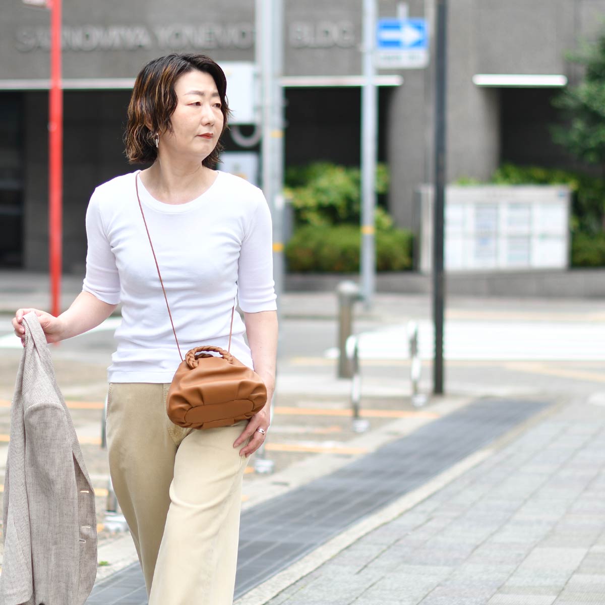 プレーンな五分袖カットソー。