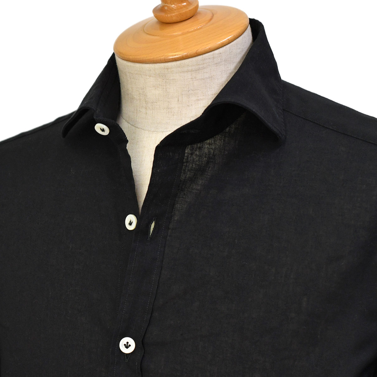 立体感のある襟元は開き具合も良く、1枚で着用した時にもサマになる仕上がりは間違い無い逸品です。