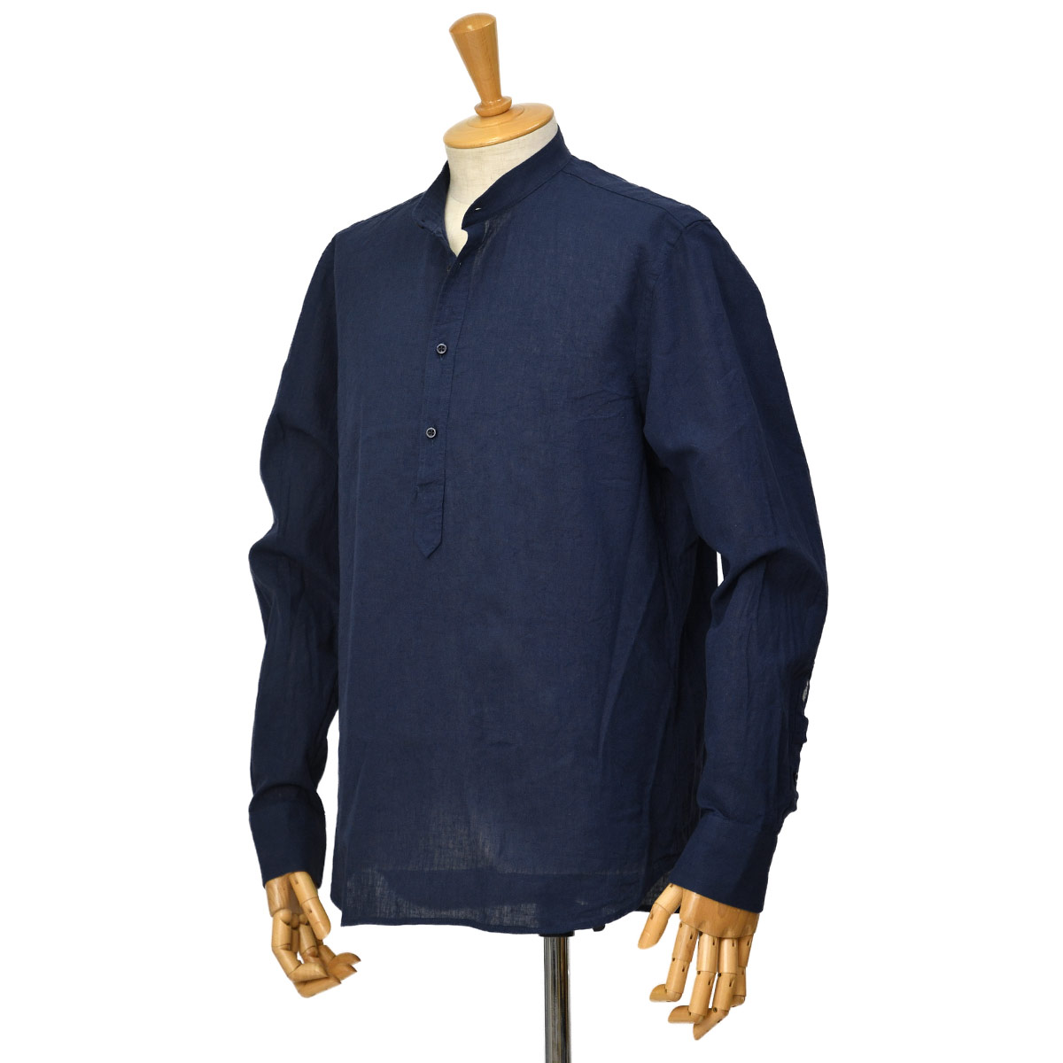 ご紹介は、バンドカラーのプルオーバーシャツです。