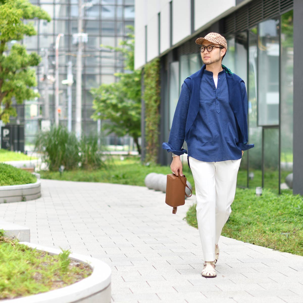 いつもより少し緩やかなサイズ感と長めの着丈をチョイスして、風の通り抜ける清涼感ある着こなしが気分ですね。
