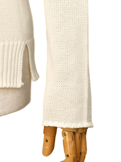 スッキリとした首元のラインが美しく、くるんとしたロールネックが優しげな表情のニット。