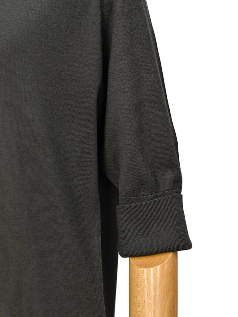シンプルながらもボディや袖周りに絶妙なゆとりをもたせ、1枚着としてより魅力的なニュアンスのあるバランス。