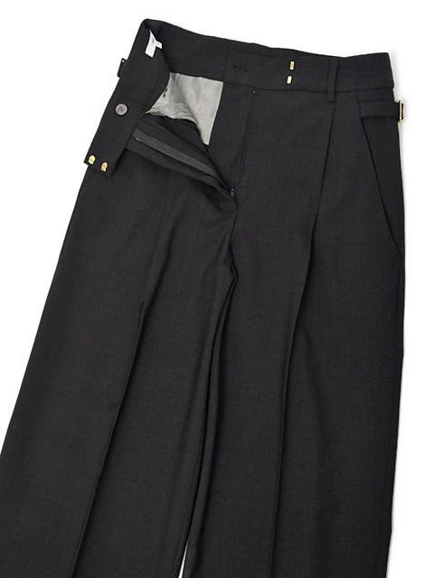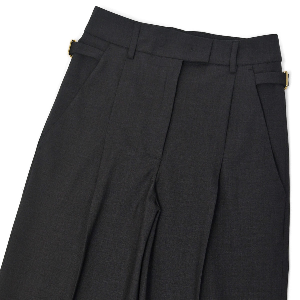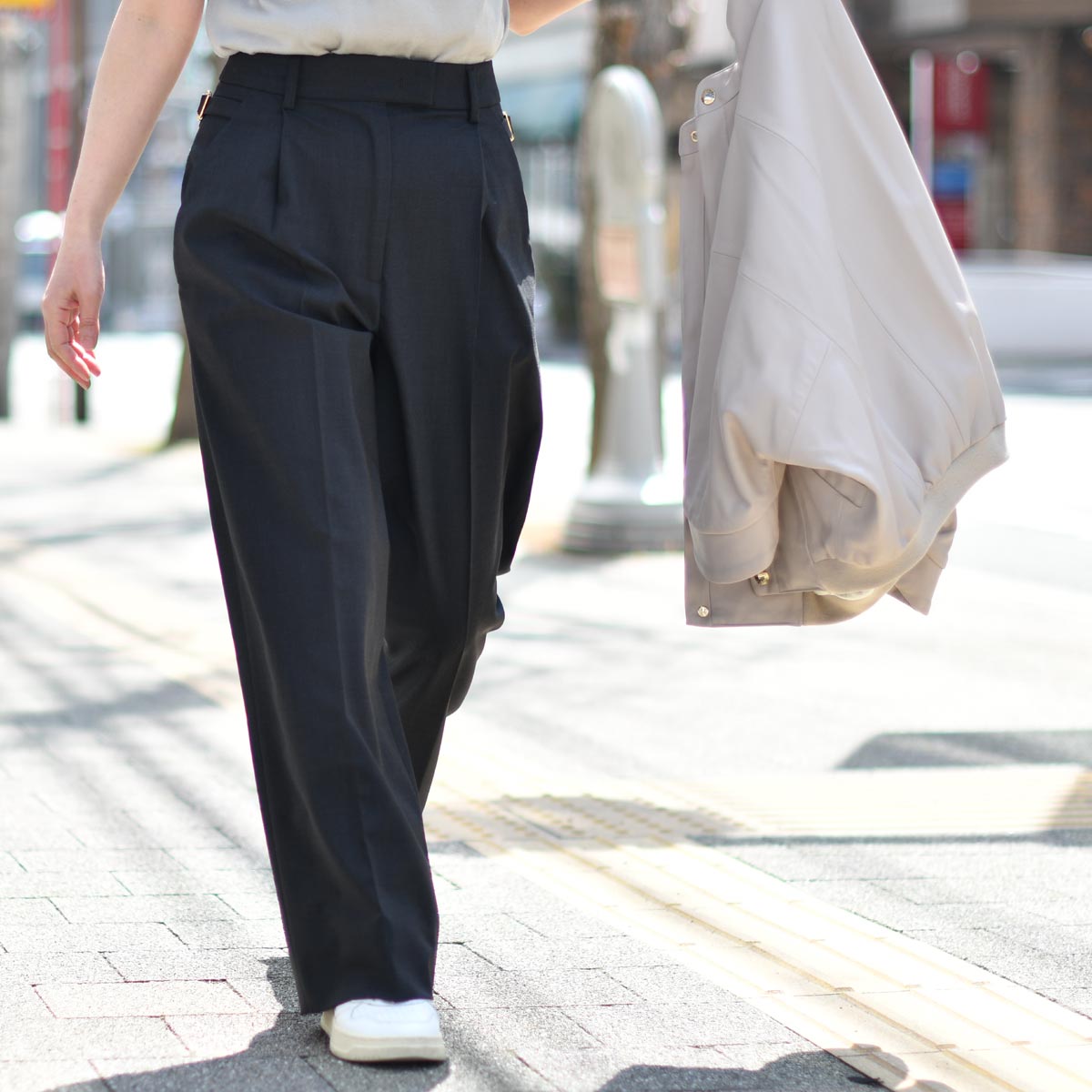 ハイウエストにタックが施されたデザインは、ウエストをスッキリと見せてくれ脚長効果がございます。