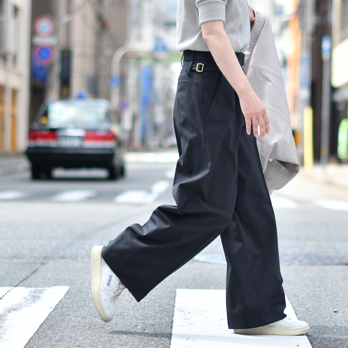 パンツ自体が、洗練された上品さがあり、スタイリッシュなシルエットの為、着こなしの幅がぐっと広がります。