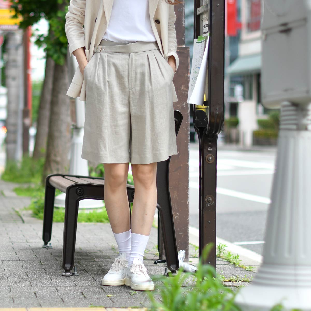ボーイッシュな印象のショートパンツも