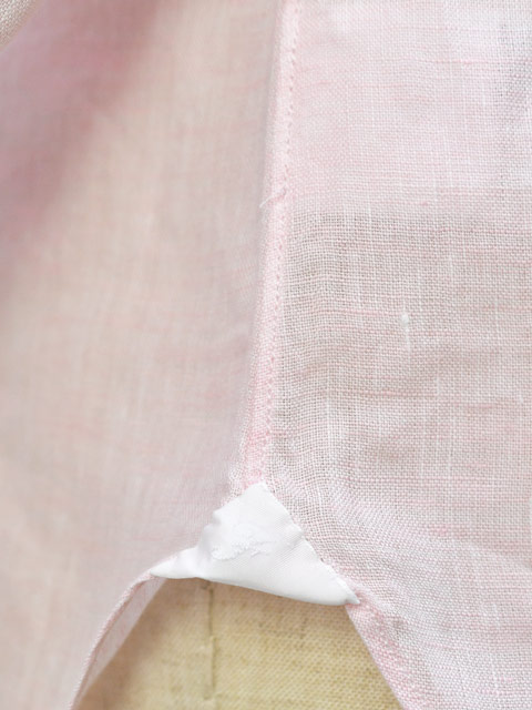 ナポリ出自のシャツらしく、手縫い仕立てによる細かい袖と背中のギャザーが後見姿を美しく見せ、また肩の運動量を妨げず柔らかな着心地。