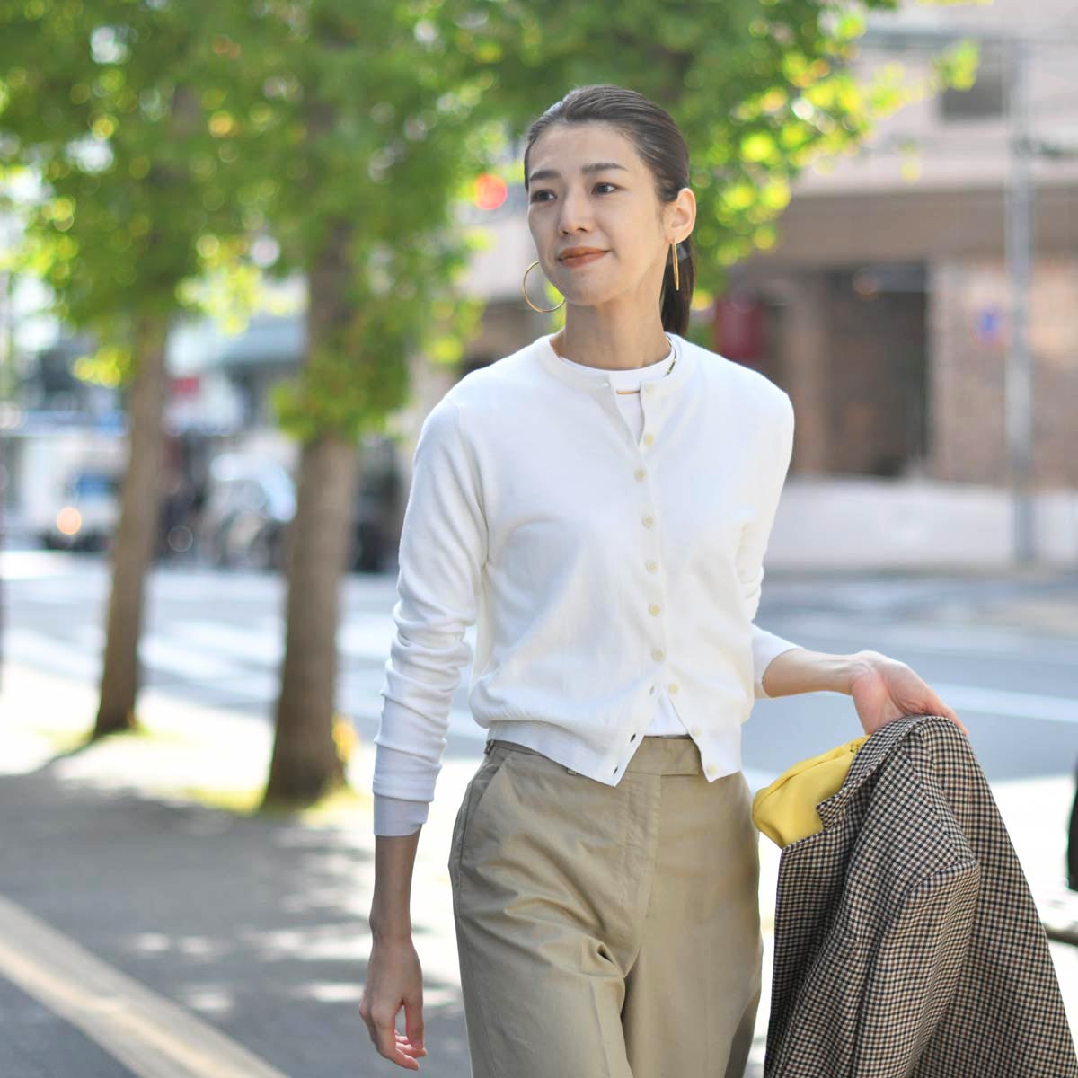 パンプスを合わせてエレガントで女性らしいスタイルや、スニーカーやサンダルを合わせたカジュアルなスタイルも素敵です。