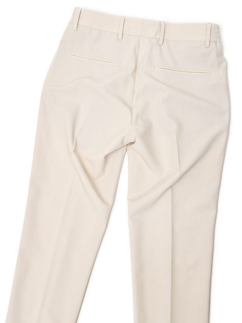使用している生地は「 ライトクレープ 」。見た目は涼し気な夏専用のトロピカルウールの様な表情ですが、実は化繊を使用した素材ですので、夏に相応しい軽さと、ドライで冷たい肌触りが夏も涼しく快適に過ごしていただけます。 ストレッチ性も備わっており、化繊を用いながらも、リアルにウール見えする素材は、正にジャブスアルキビオならではの素材ではないでしょうか。