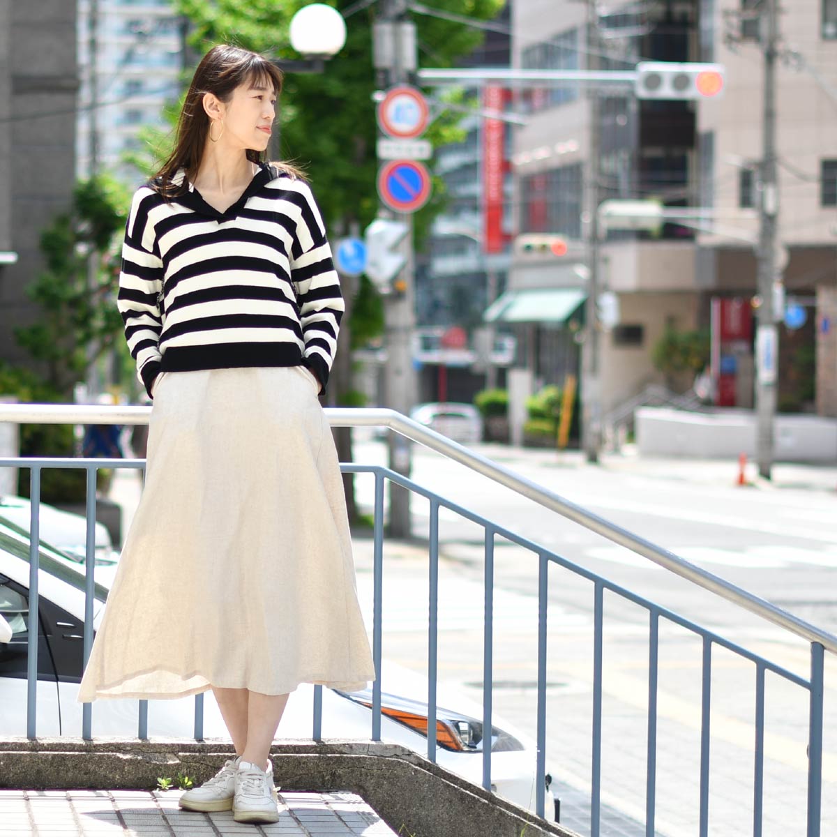 一枚で着映える、セーラーカラーのボーダーニット。