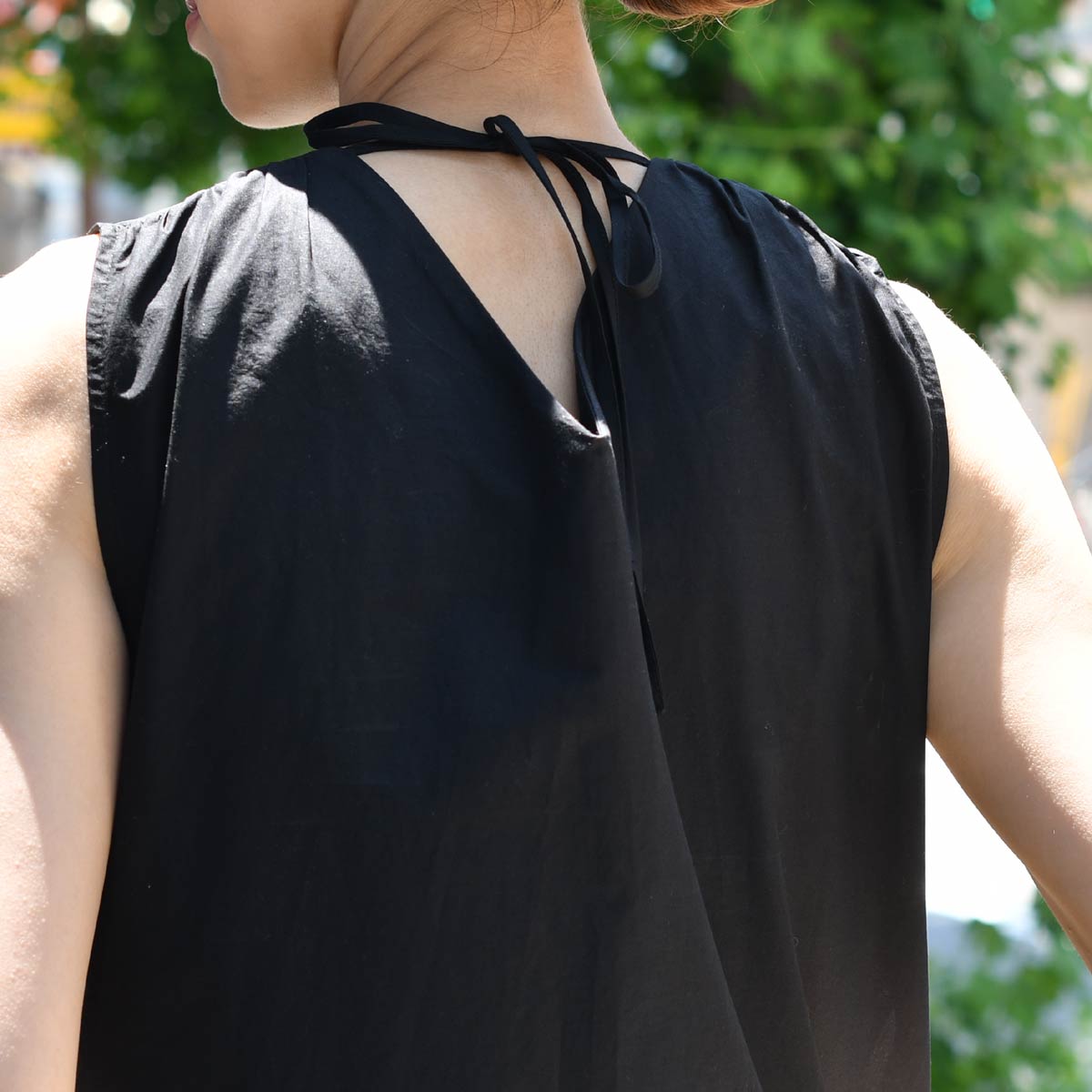 スッキリとしたネックライン、リボンディテールが女性らしく
