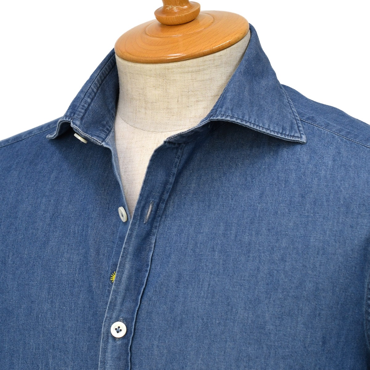 立体感のある襟元は開き具合も良く、1枚で着用した時にもサマになる仕上がりは間違い無い逸品です。