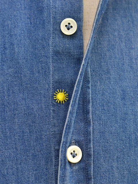 シャツの第2、第3ボタンの間にブランドアイコンの太陽のマークが付いておりチラッと覗く太陽のマークもアクセントとしても大活躍して頂けます!