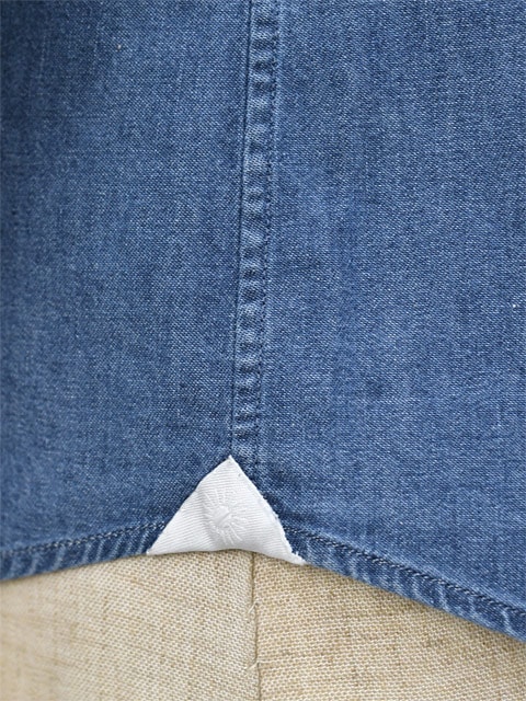 人気の着丈が短い“VINCI FIT ”ですが、背中のダーツを外すことによってウエストシェイプを敢えて緩やかにした仕様は、リラックスしたシャンブレーの表情と相性の良いシルエットです。