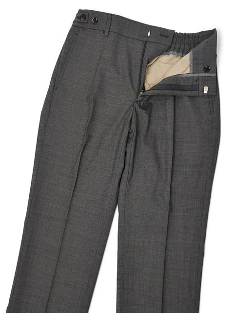 オールシーズンでご利用頂けるウール素材を使用。また、化繊を加えることによりご自宅でのお洗濯を可能とする一本です。控えめな光沢感の生地の表情はビジネスだけでなく日常使いでも大変重宝するスグレモノなアイテムですね。