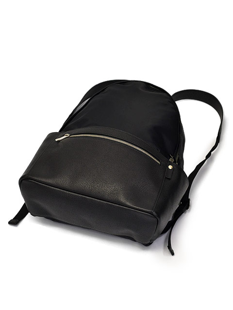 滑らかな肌触りのナイロン素材とレザー使いのコンビアイテム。