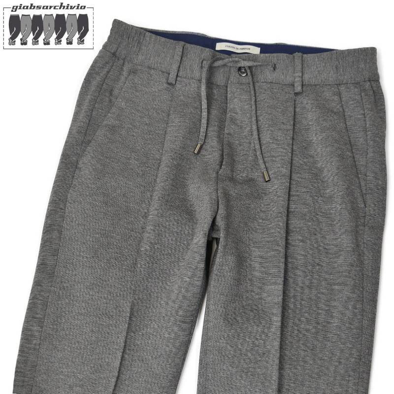ご紹介は、giabsarichivioの定番である程よく肉厚なジャージー生地を使用しており、しっかりとした伸縮性ながらも戻りのいいキックバックが特徴の一本でございます。